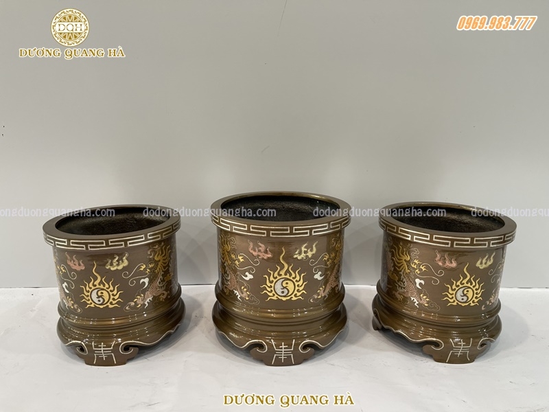 Tên gọi sản phẩm: BỘ BA BÁT HƯƠNG ĐỒNG ĐỎ KHẢM TAM KHÍ ĐIỂM DÁT VÀNG MỚI NHẤT