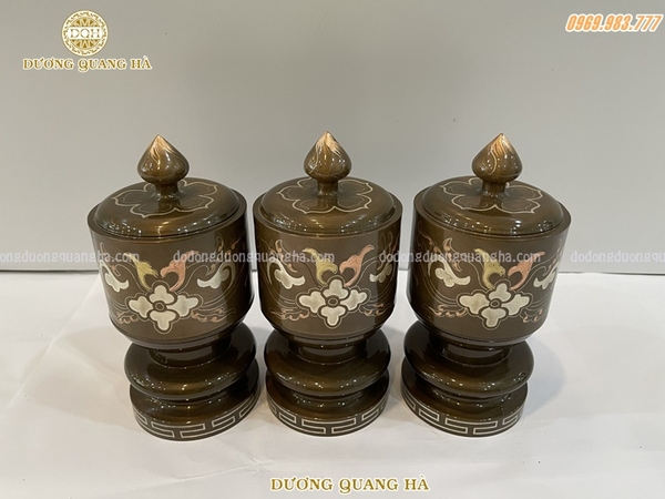 Tên gọi sản phẩm: BỘ ĐÀI THỜ CHẤT LIỆU ĐỒNG ĐỎ KHẢM TAM KHÍ