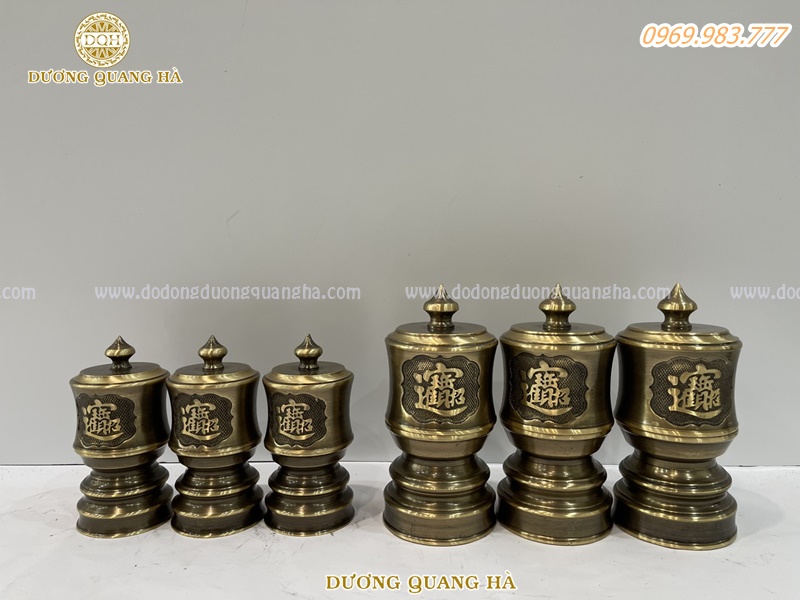 Tên gọi sản phẩm: BỘ ĐÀI THỜ MUỐI-GẠO-NƯỚC ĐỒNG VÀNG HUN