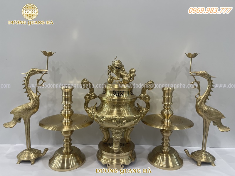 • Bộ đỉnh 50cm đi với bàn thờ dài 1m67, rộng 81cm, cao 1m27.