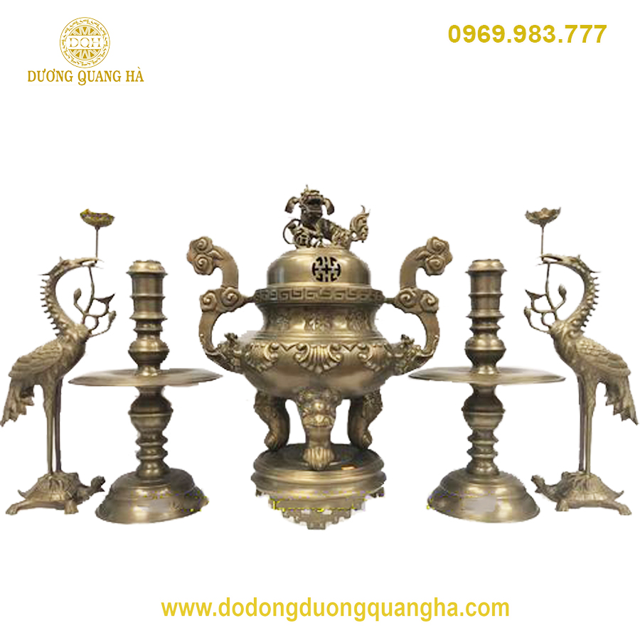 Bộ đỉnh 50cm đi với bàn thờ dài 1m67, rộng 81cm, cao 1m27.