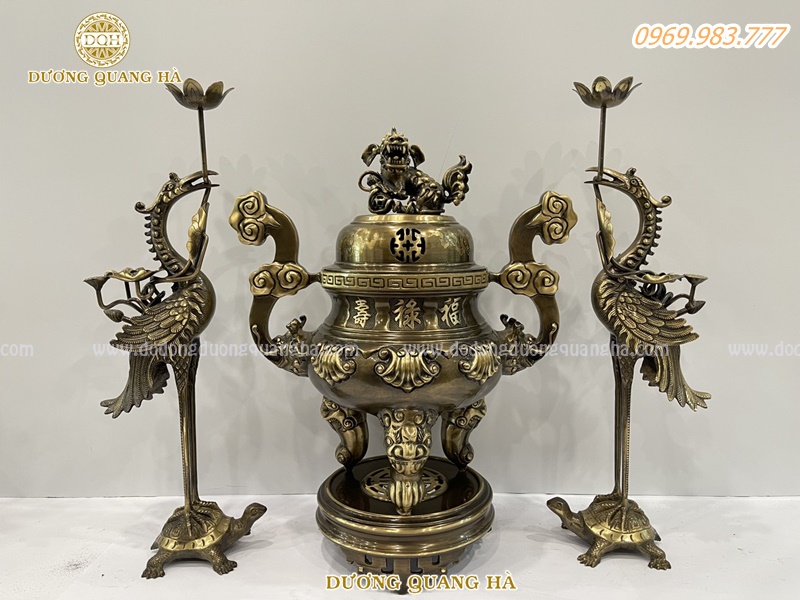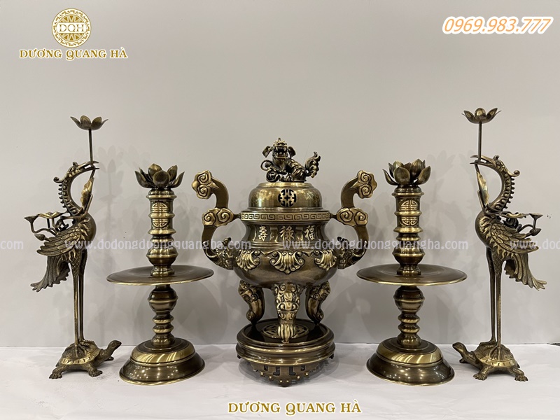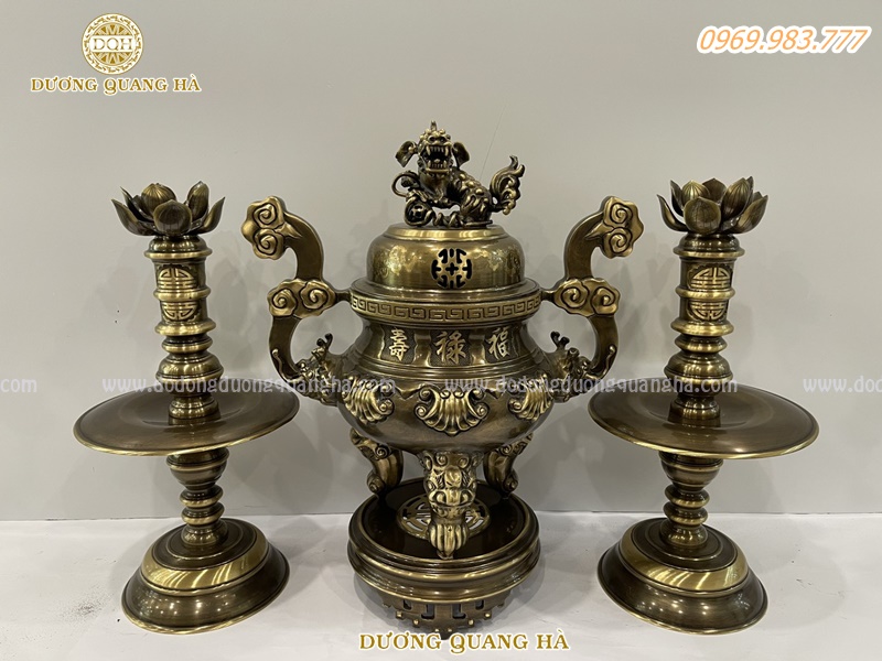 • Bộ đỉnh 45cm đi với bàn thờ dài 1m55, rộng 61cm, cao 1m27.