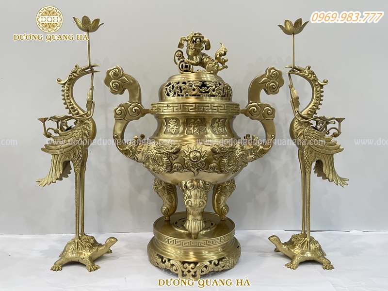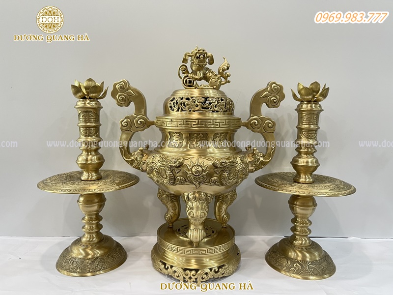• Bộ đỉnh 50cm đi với bàn thờ dài 1m67, rộng 81cm, cao 1m27.