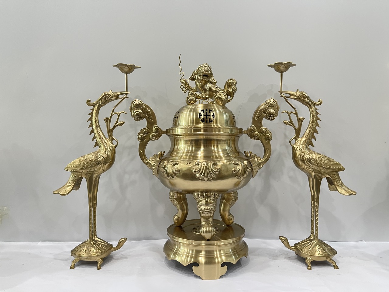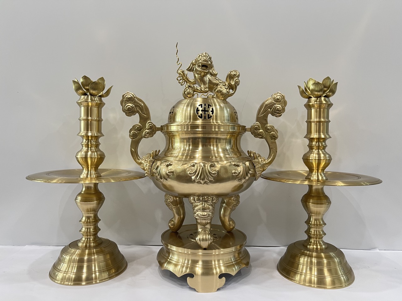 • Bộ đỉnh 45cm đi với bàn thờ dài 1m55, rộng 61cm, cao 1m27.