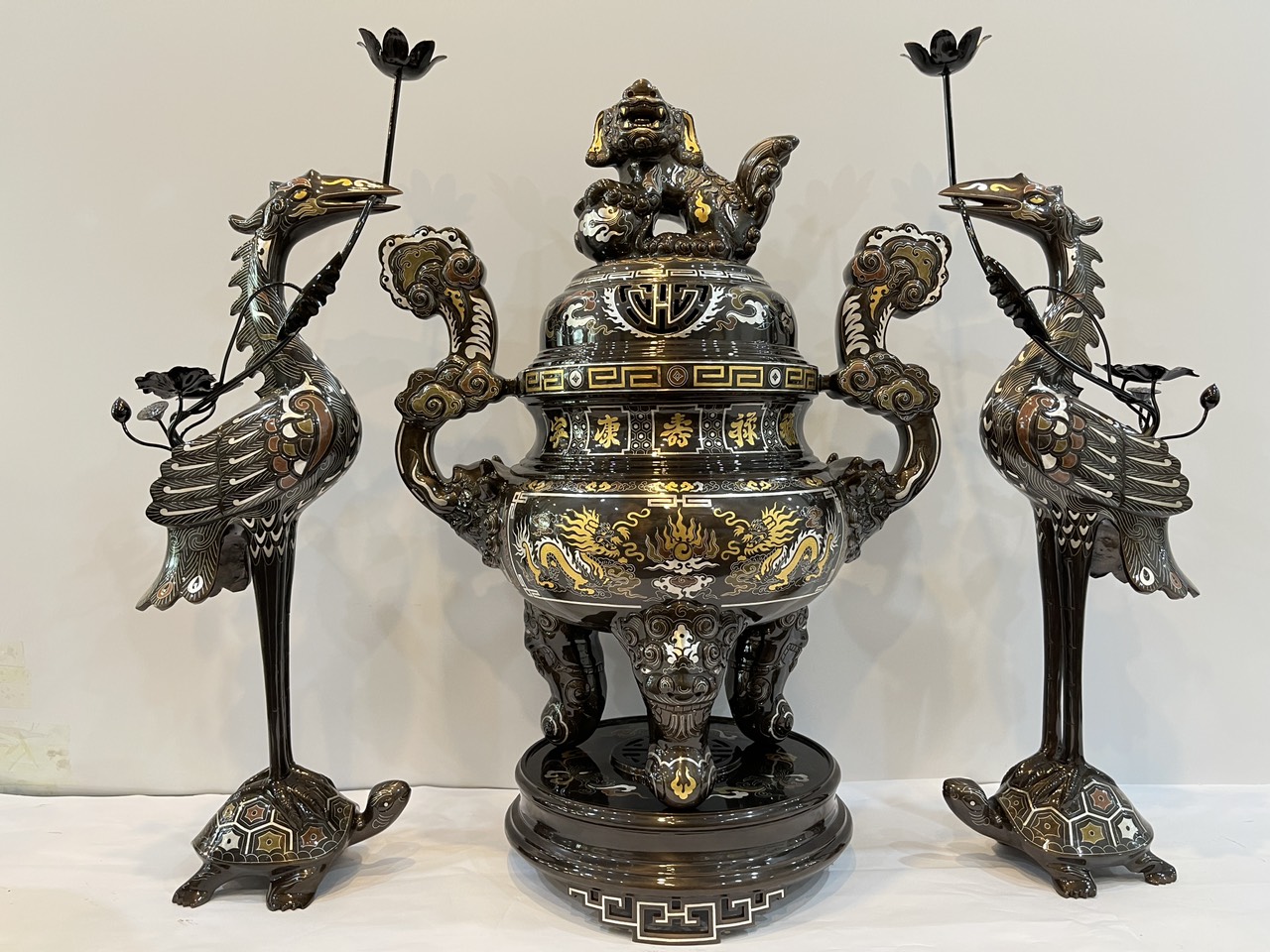 Tên gọi sản phẩm: BỘ TAM SỰ CAO 70CM CHẤT LIỆU ĐỒNG ĐỎ KHẢM NGŨ SẮC TINH XẢO SẮC NÉT