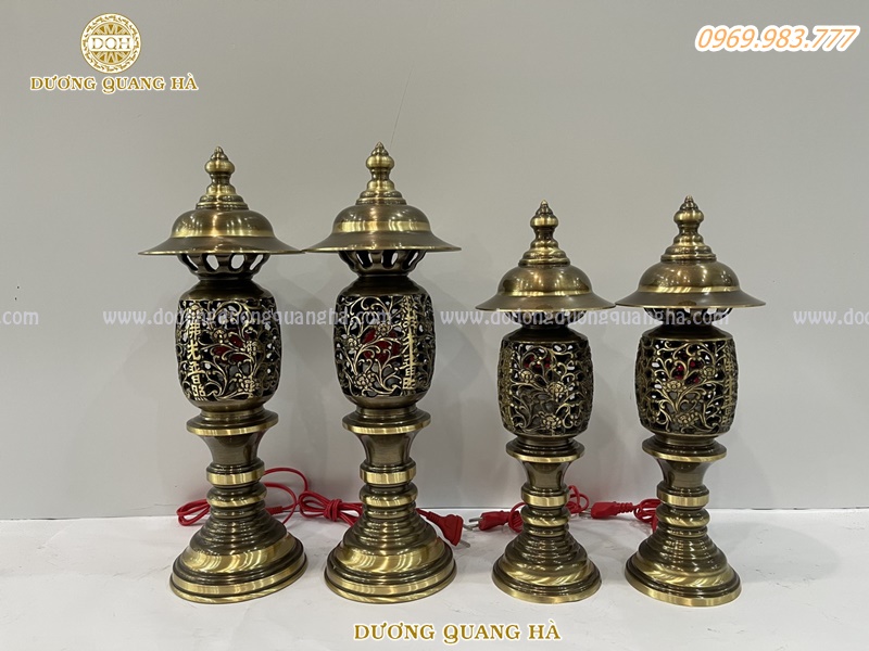 Tên gọi sản phẩm: ĐÈN THỜ QUẢ DỨA ĐỒNG VÀNG HUN