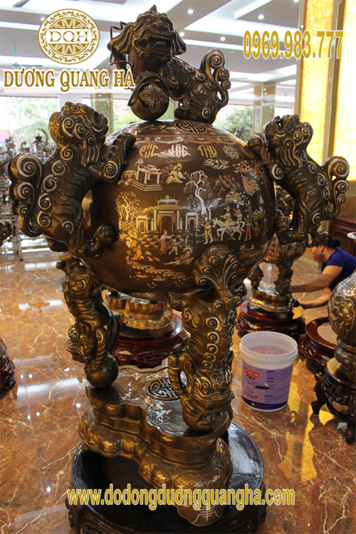Tóm tắt về sản phẩm: Tất cả sản phẩm được đúc, gia công chế tác, chạm khảm tất cả đều được làm thủ công bằng tay mỗi sản phẩm thực sự là một tác phẩm đồng mỹ nghệ tinh xảo đến mức cao nhất, với những đường nét lưu loát, có giá trị thực sự cao của những nghệ nhân, những người thợ tài hoa từ làng nghề đúc đồng Huyện Ý Yên, Tỉnh Nam Định.