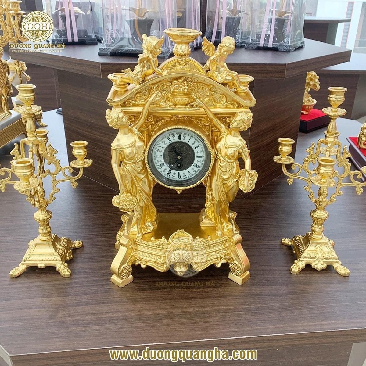 Đồng hồ cô gái dát vàng 9999 để bàn theo phong cách tân cổ điển sang trọng là món đồ trang trí không thể thiếu cho không gian nội thất.
