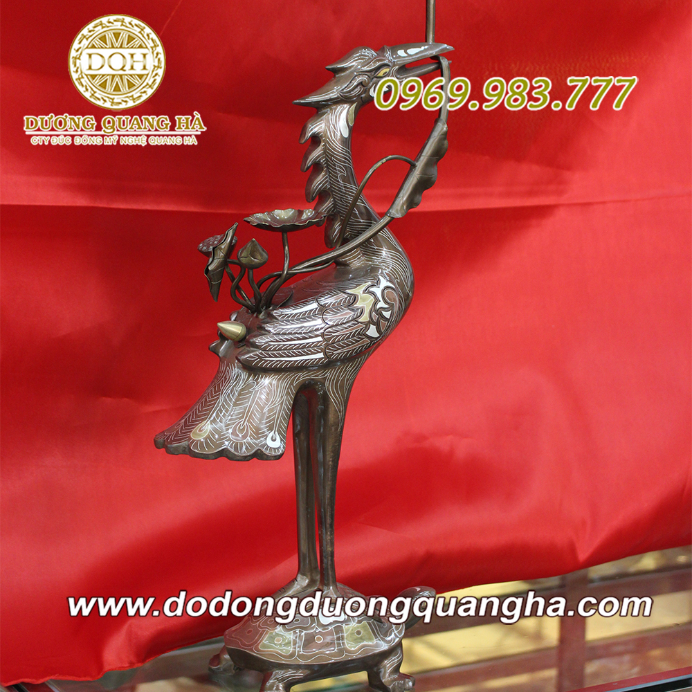 Chất liệu: Đồng đỏ, đúc thủ công, khảm ngũ sắc ( vang9999, bạc, đồng đỏ, đồng vàng, đồng xanh )