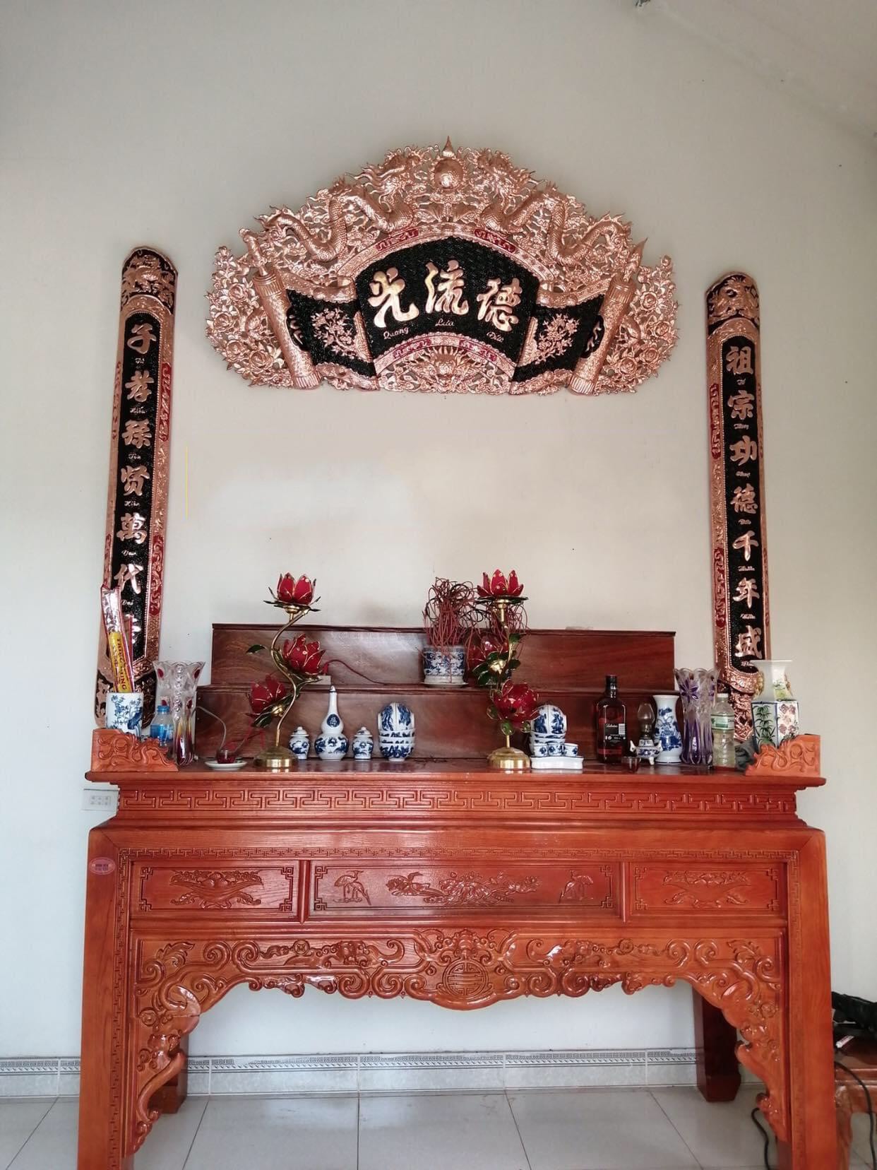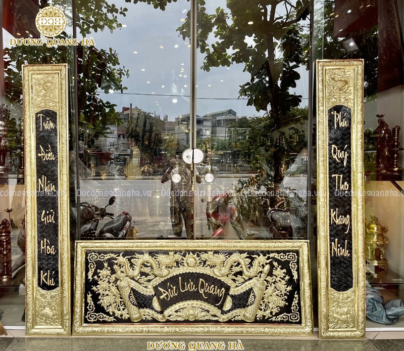 Bộ hoành phi câu đối bằng đồng được làm từ chất liệu đồng nguyên chất, mang lại những sản phẩm có độ bền cao, chạm khắc hoa văn tinh xảo, tạo nên giá trị thẩm trong phòng thờ của mỗi gia đình.