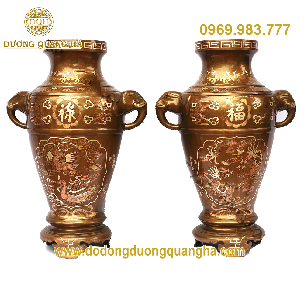 Tên gọi sản phẩm: Lọ hoa tai voi đồng đỏ khảm tam khí