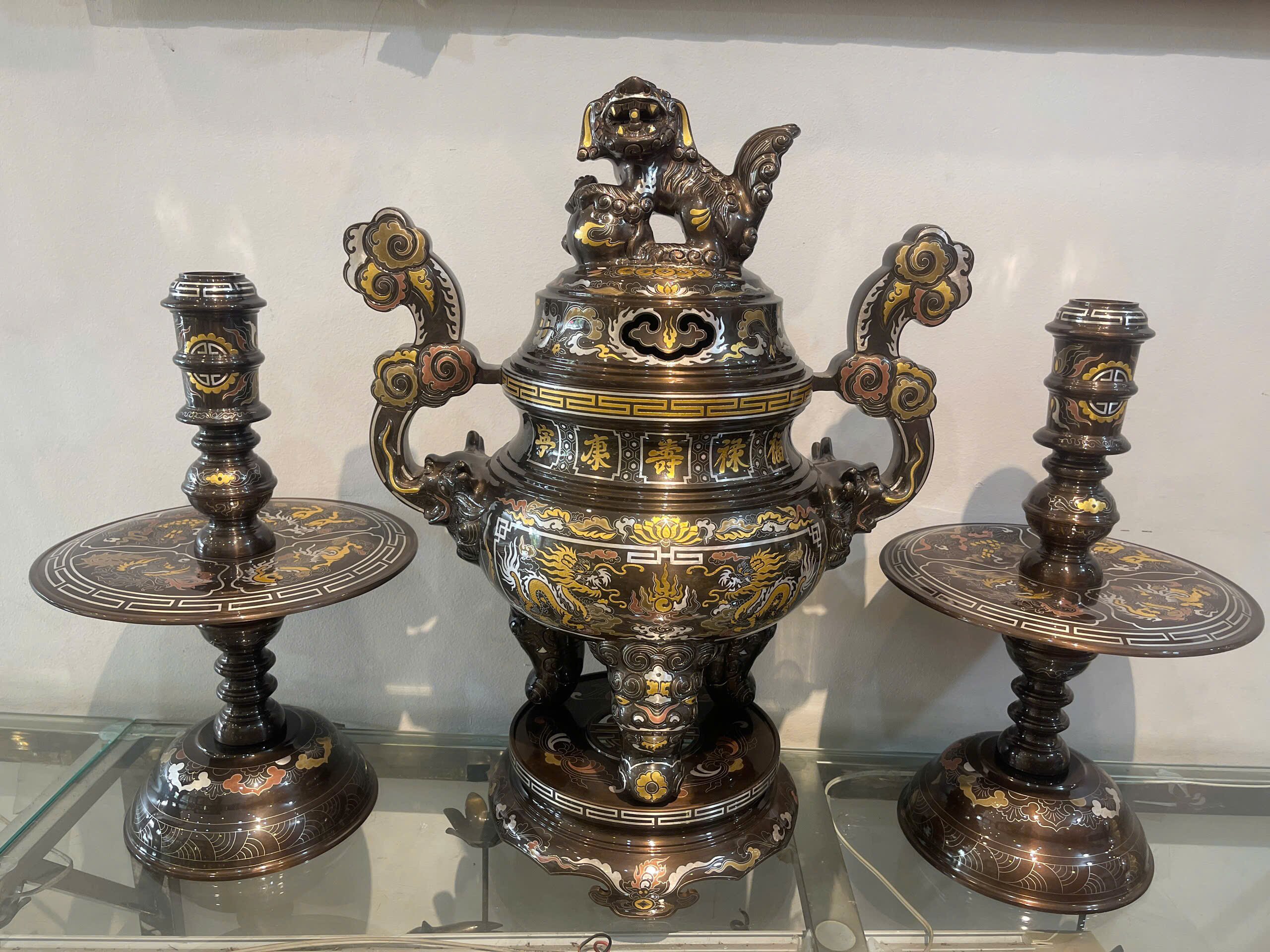 Tóm Tắt Về Sản Phẩm: Sản phẩm được đúc thủ công và được gia công một cách chi tiết và tỉ mỉ khảm Vàng ròng 24K, 9999 trên toàn bộ bề mặt tạo nên một bộ sản phẩm đẳng cấp và sang trọng.