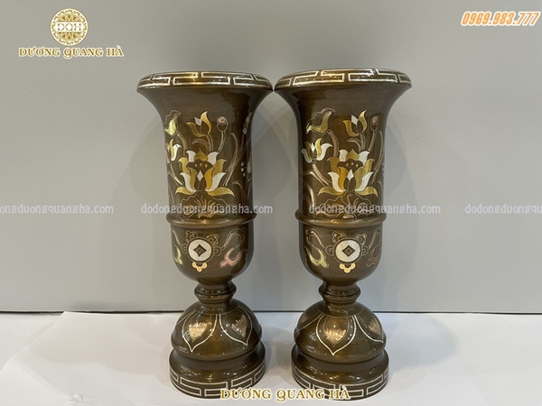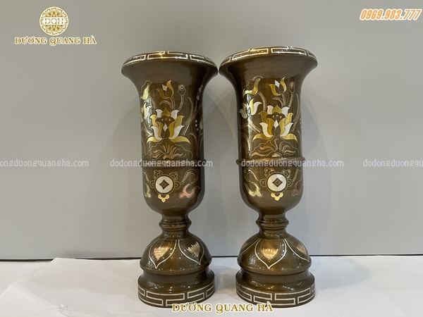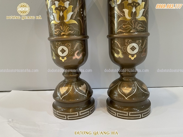Chất liệu: đồng đỏ khảm tam khí ( khảm bạc, đồng vàng, đồng đỏ )