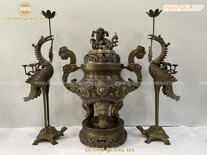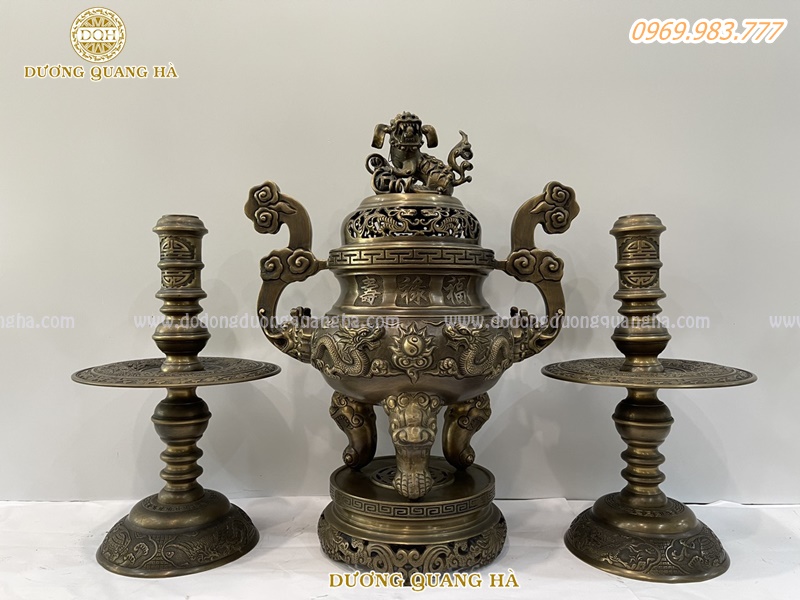 • Bộ đỉnh 50cm đi với bàn thờ dài 1m67, rộng 81cm, cao 1m27.