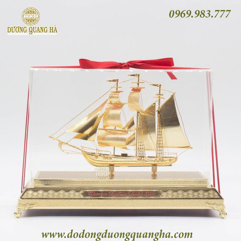 Thuyền buồm mô hình mạ vàng 24k kích thước 31cm x 22cm đế gỗ