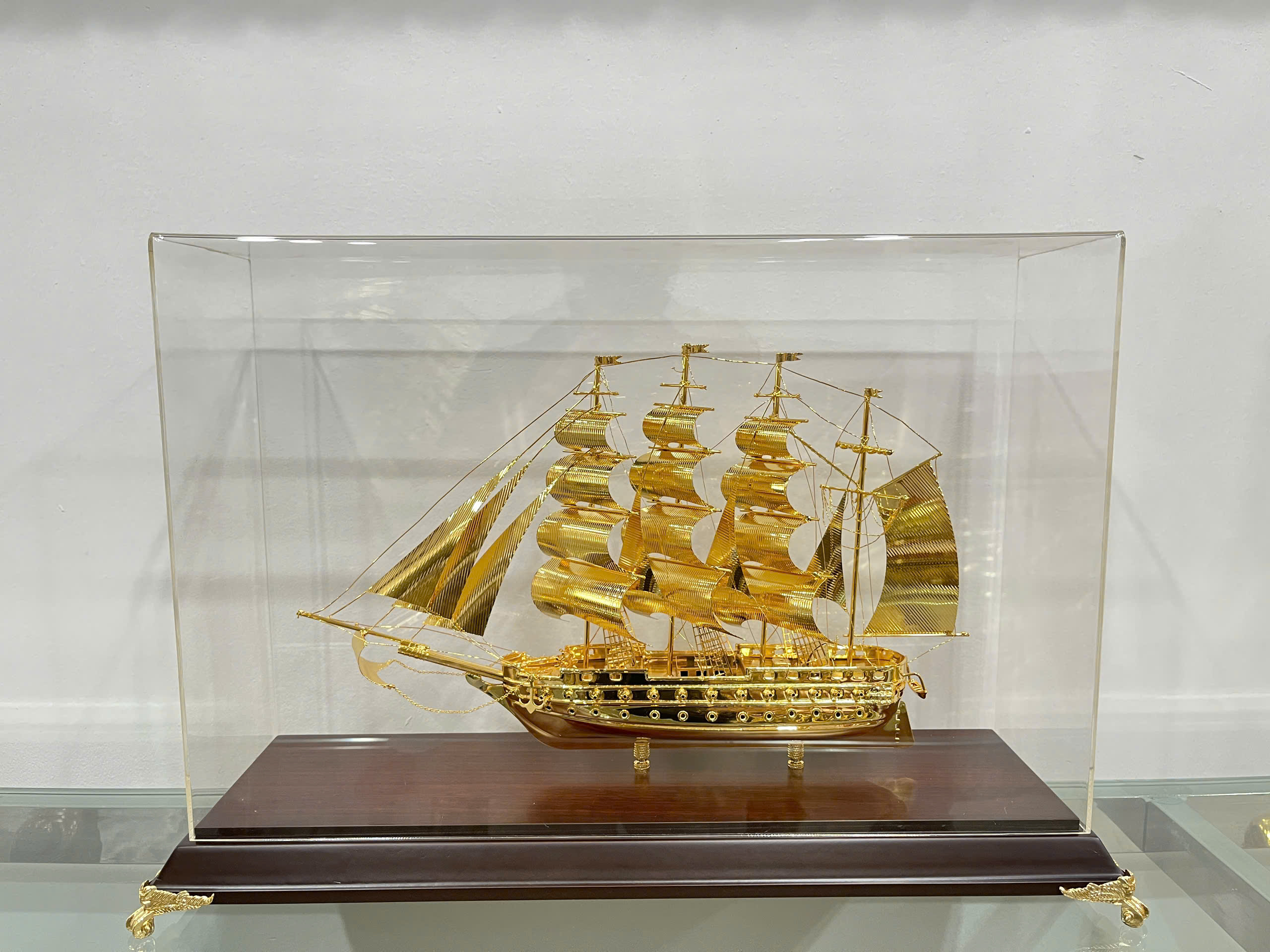 Thuyền buồm mô hình mạ vàng 24k kt 50 x 34cm