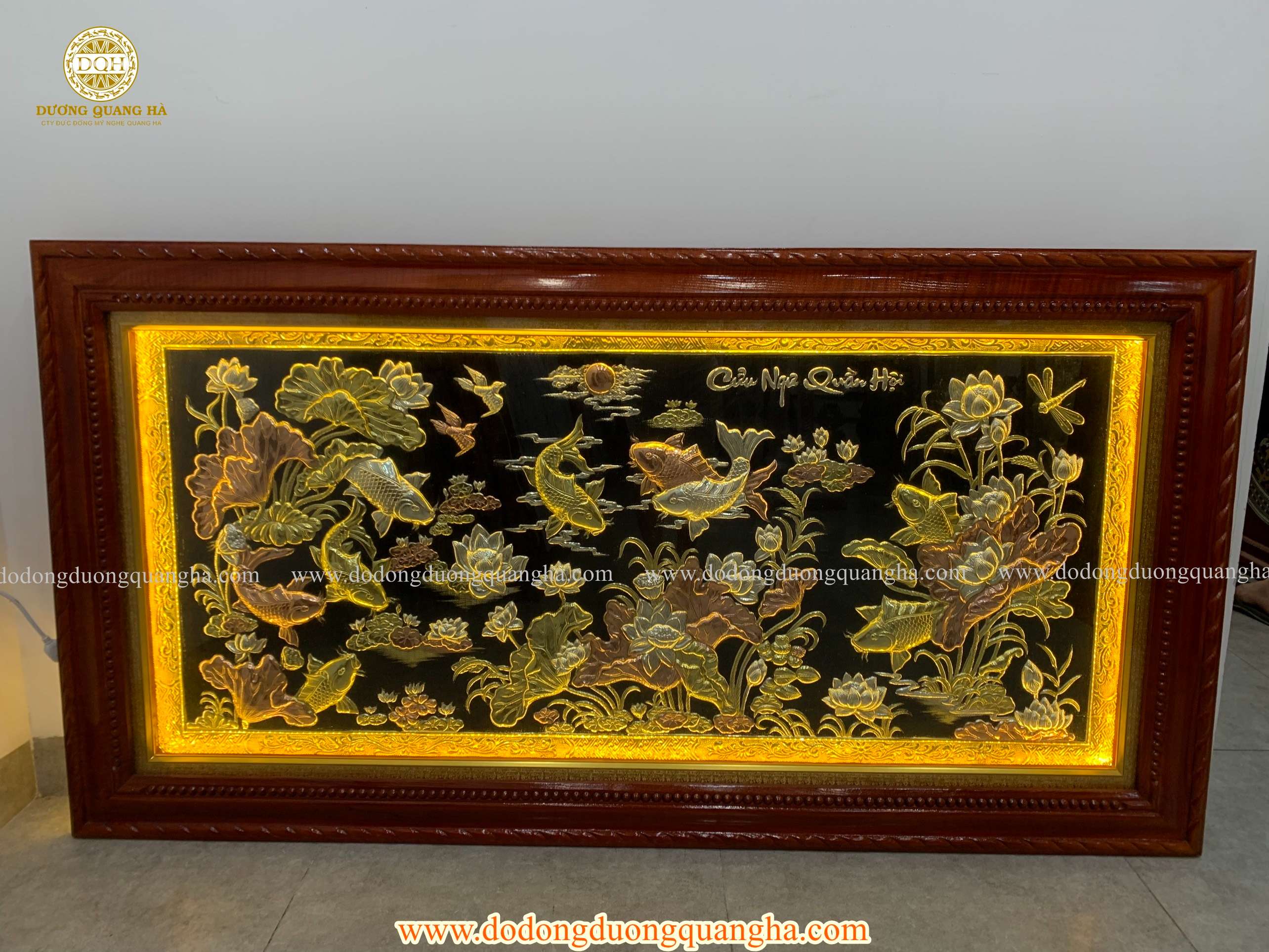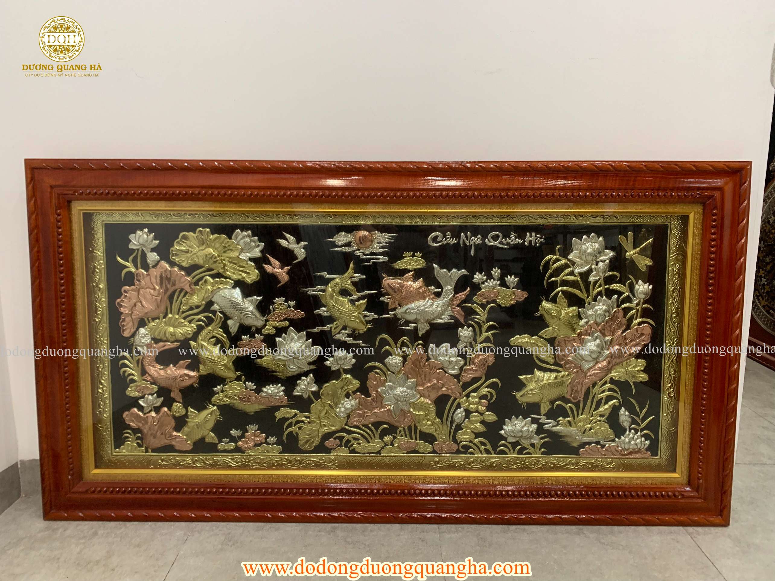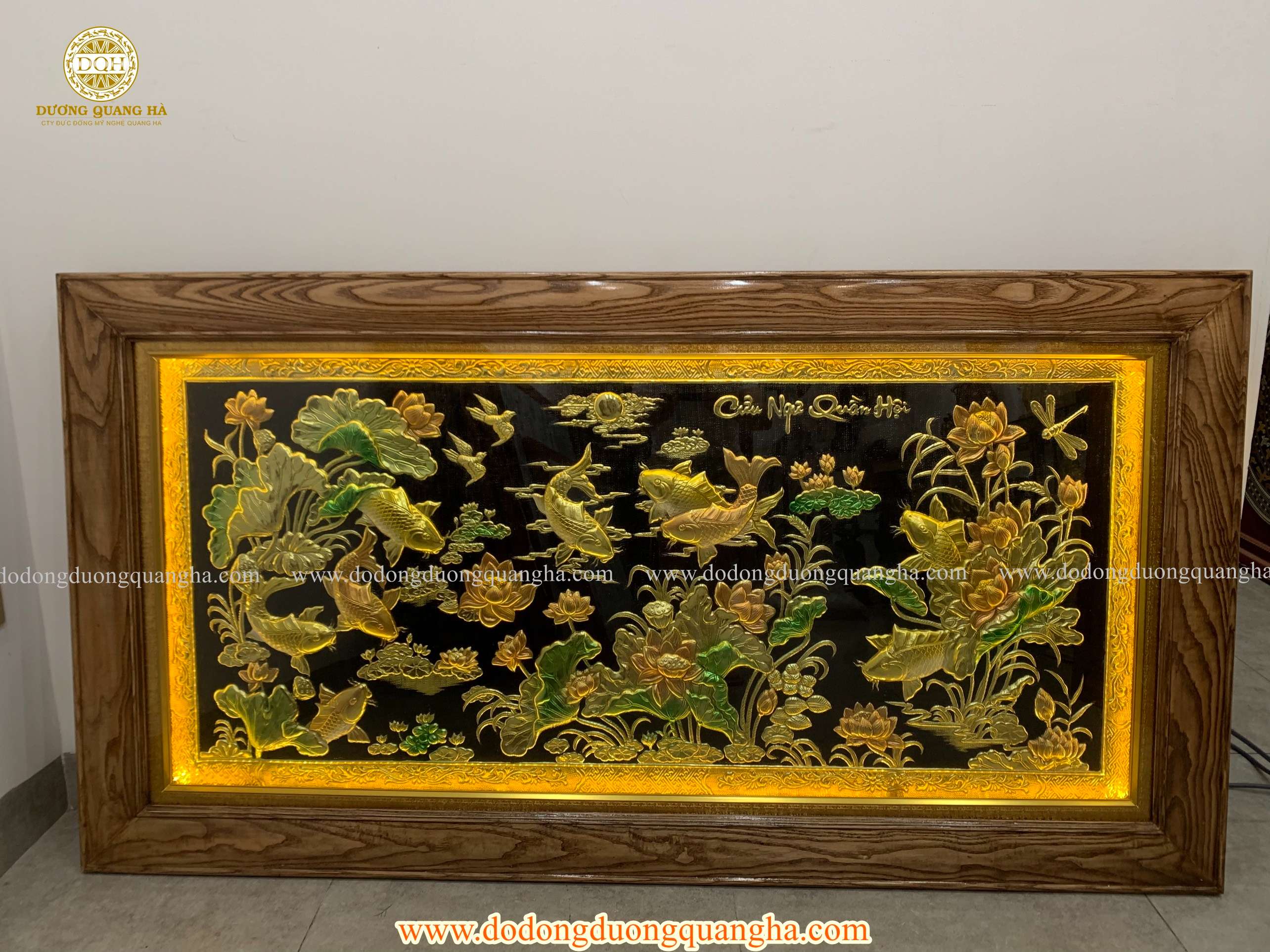 Tên gọi sản phẩm:Tranh Cửu Ngư Quần Hội 1m7 x 90 mạ tam khí có đèn led sang trọng
