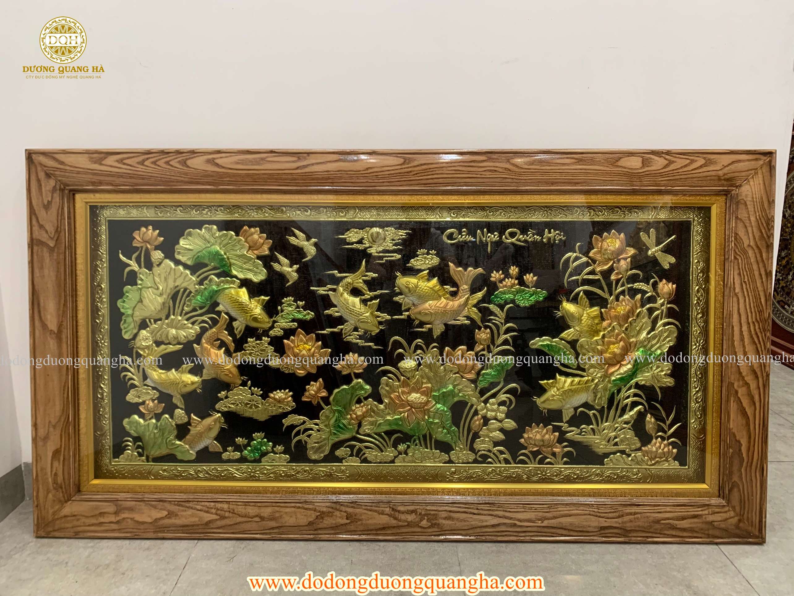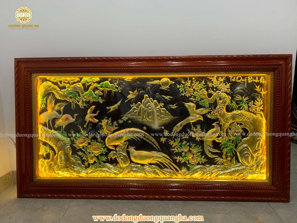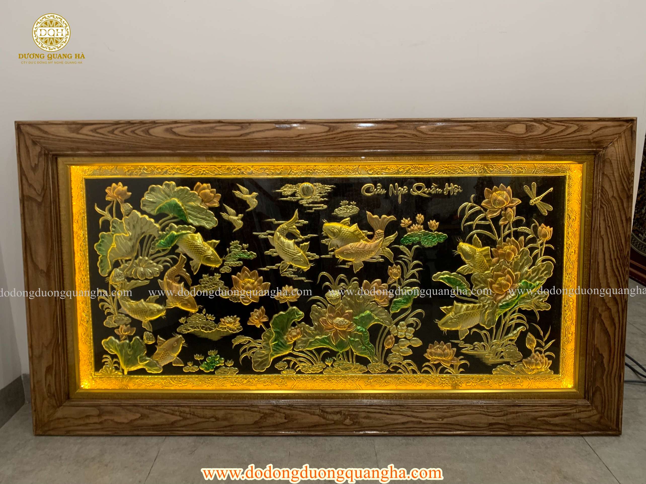 Tên gọi sản phẩm:Tranh Cửu Ngư Quần Hội 1m7 x 90 mạ tam khí có đèn led sang trọng