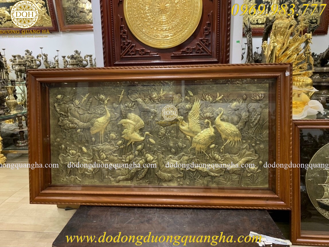Tên gọi sản phẩm: tranh phù điêu sen hạc thiếp vàng 9999