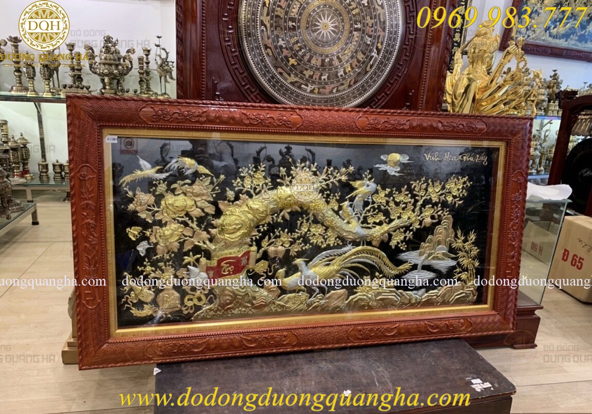 Loại khung thứ 2 cao cấp hơn là khung bằng đồng, các cạnh của khung chạm trổ họa tiết đẹp, có thể nói dòng khung đồng này đảm bảo bức tranh đồng mãi bền theo thời gian.