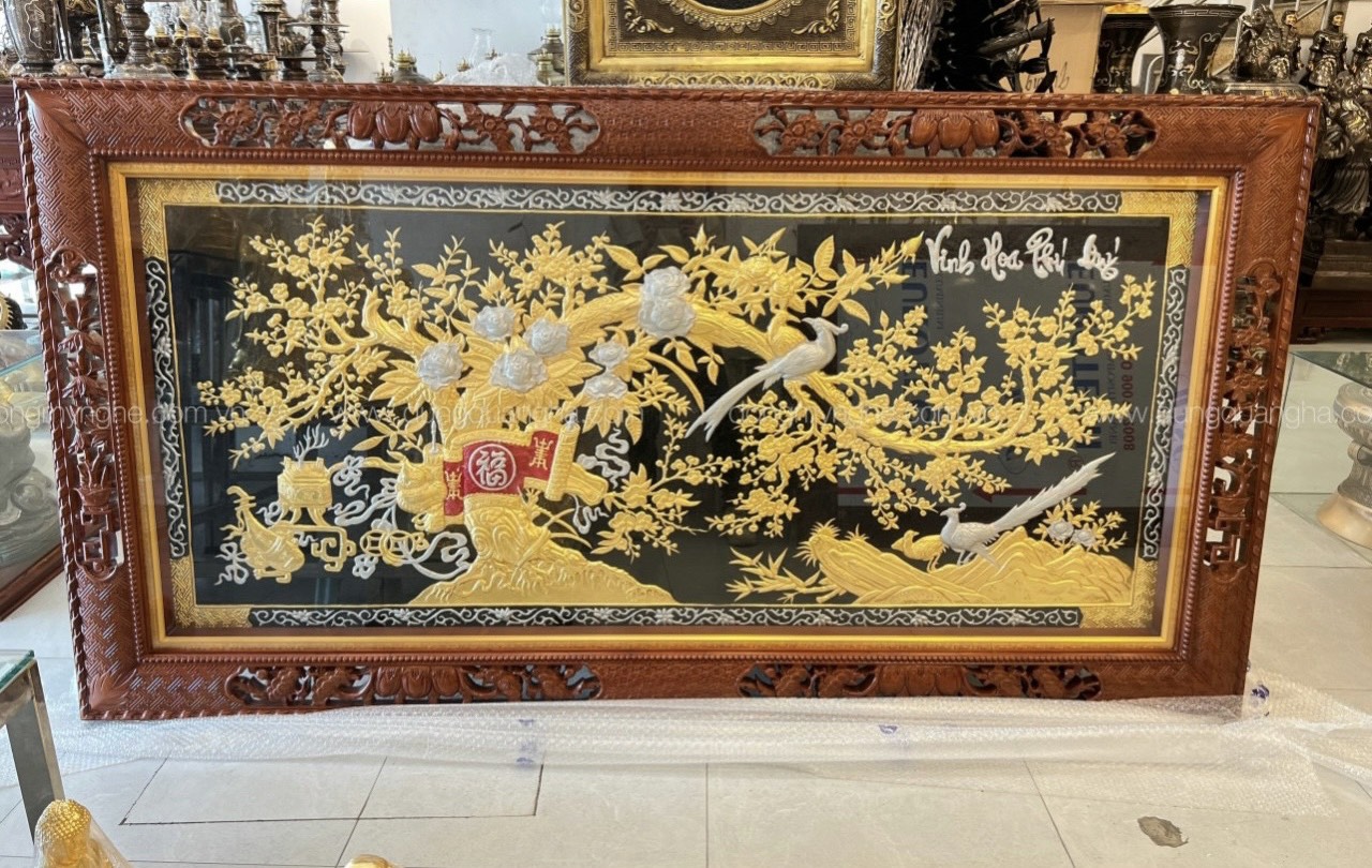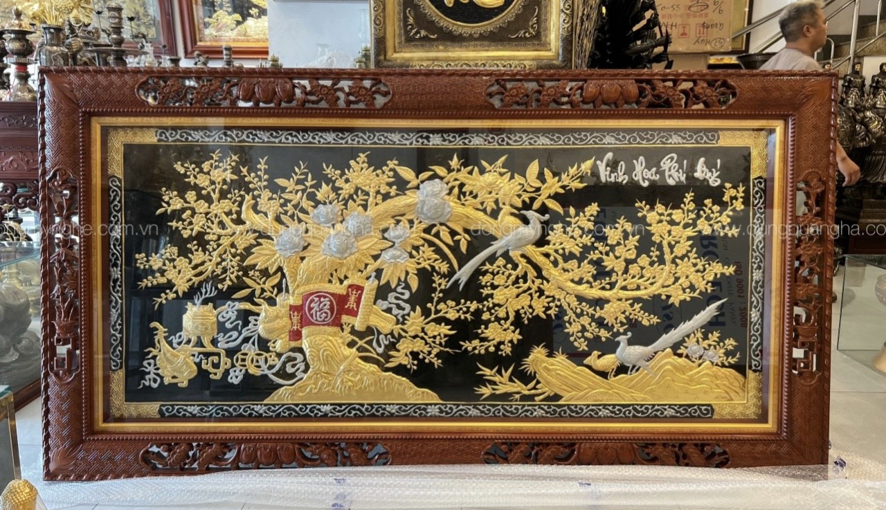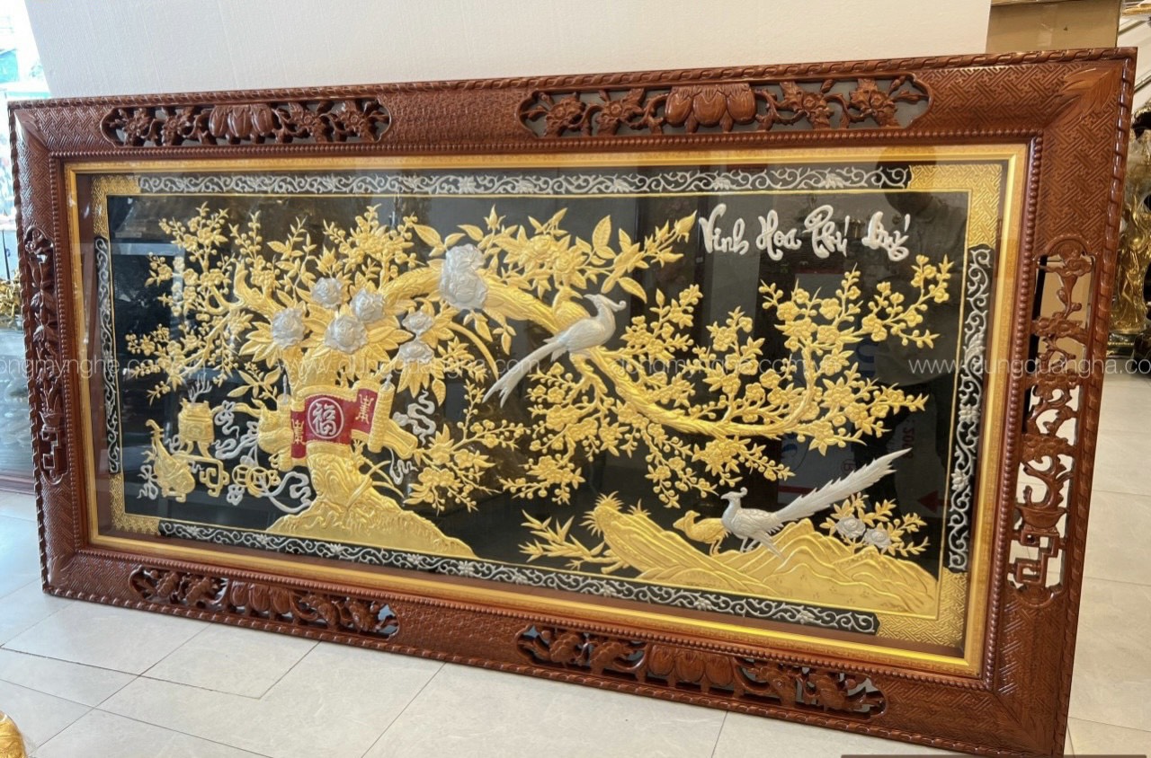Tên gọi sản phẩm: Tranh Vinh Hoa Phú Quý Dát Vàng Khung Gỗ Gụ