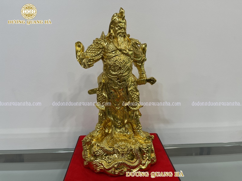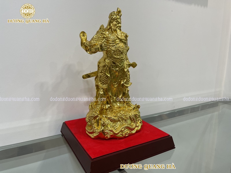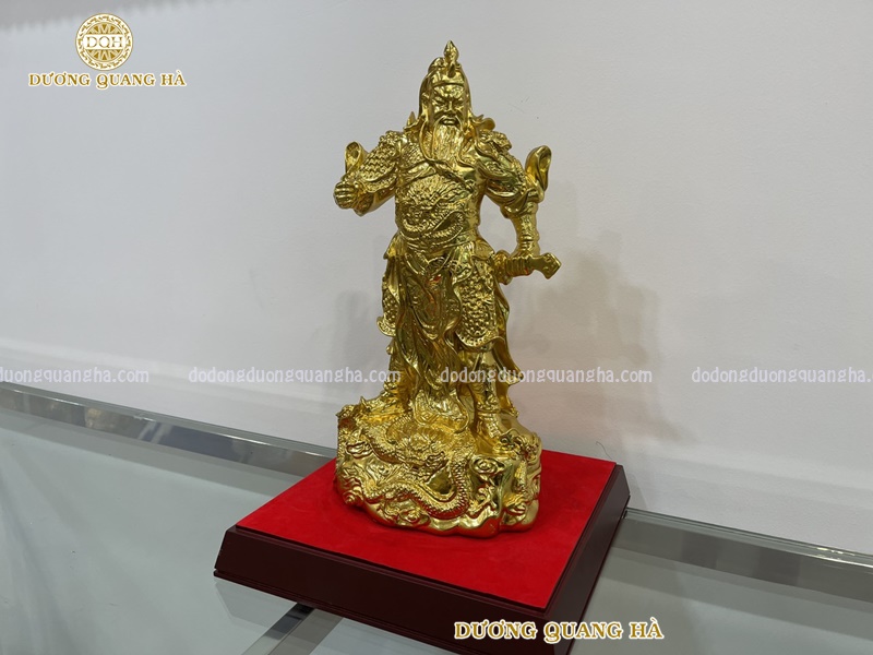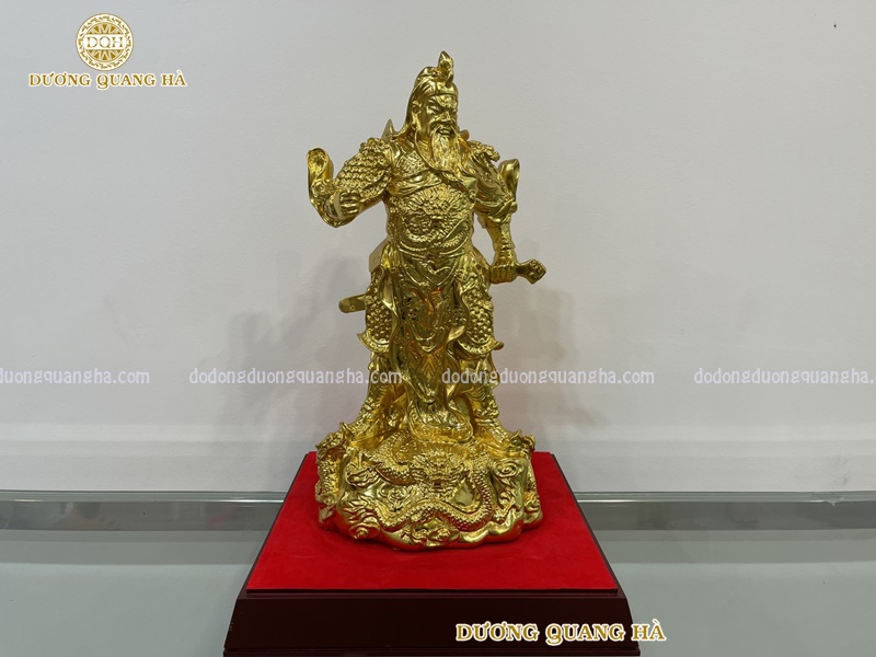 Tên gọi sản phẩm: Tượng Quan Công chống đao đứng bệ đá rồng dát vàng
