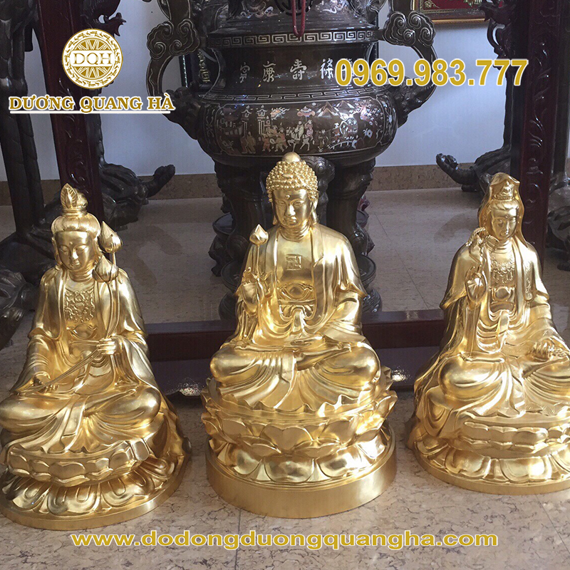 Tên gọi sản phẩm: Tượng Tam thế Phật dát vàng 9999 cao 97cm