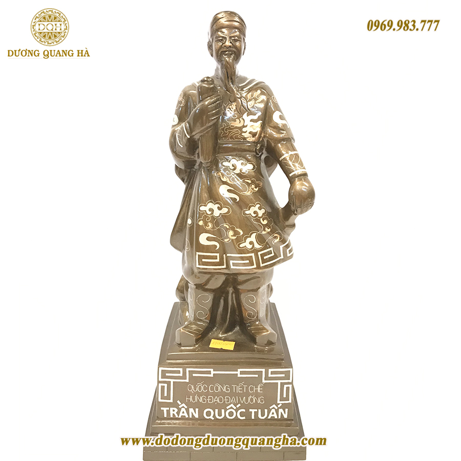 Tượng Trần Hưng Đạo Đồng Đỏ Khảm Tam Khí Cao 38cm